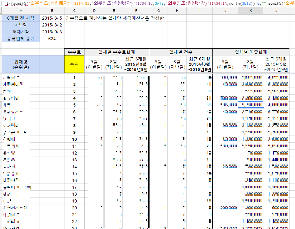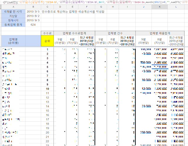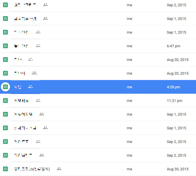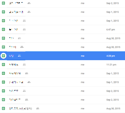 작업의 대부분은 구글드라이브에서 제공하는 구글스프레드시트 어플리케이션 안에서 이루어져다.