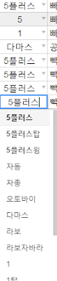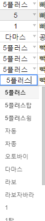 <오른쪽 기능은 또 다른 구글 스프레드시트의 유용한 기능이다. Validation(확인) 기능으로 특정한 문자만을 입력하도록 제한할 수 있다. 또한 자동완성 기능이 있기 때문에 양식에 맞는 글자를 일부만 입력해도 손쉽게 원하는 단어를 완성할 수 있다.>