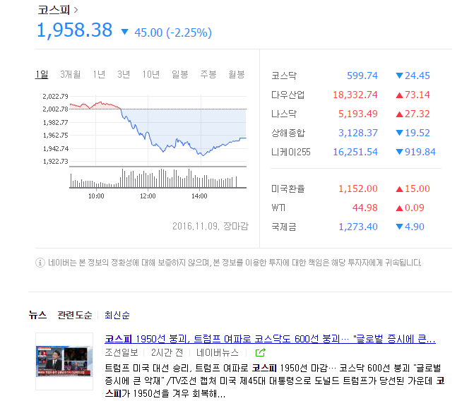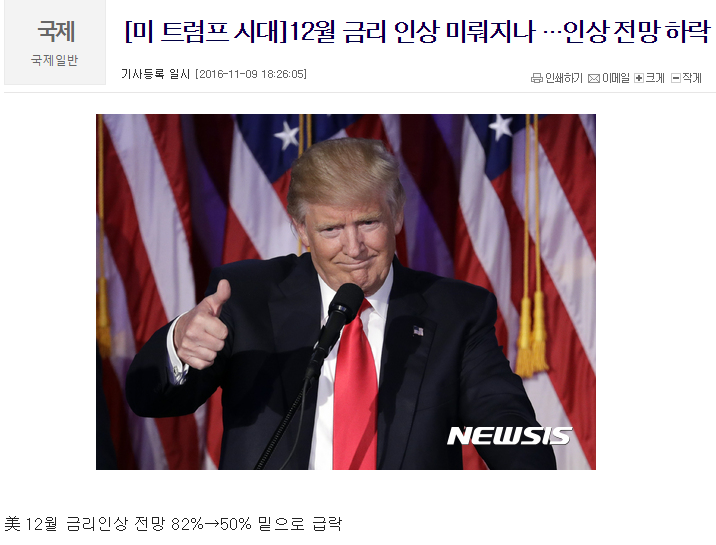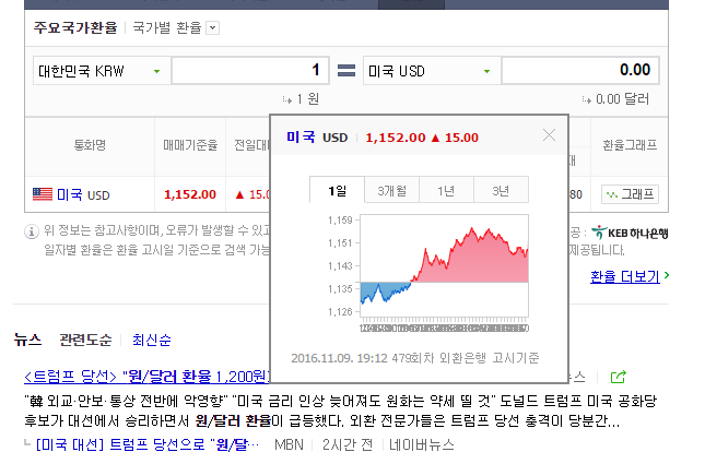 환율도 따라갑니다. 별다른 경제적 파급 없이, 당선 뉴스만으로 원화가 하루만에 가치절하가 됩니다.